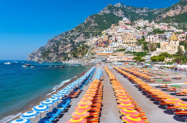 On the Amalfi Coast you can discover one of the most beautiful coastlines in the world. Positano is an ancient seaside, one of the most popular resorts on the Amalfi Coast with its white houses, the wide range of coloured garden and the spectacular blue sea. It is called also 'the vertical town' as its building are one close to the other; the heart of Positano is Spiaggia Grande one of the largest and most popular beaches on the coast.